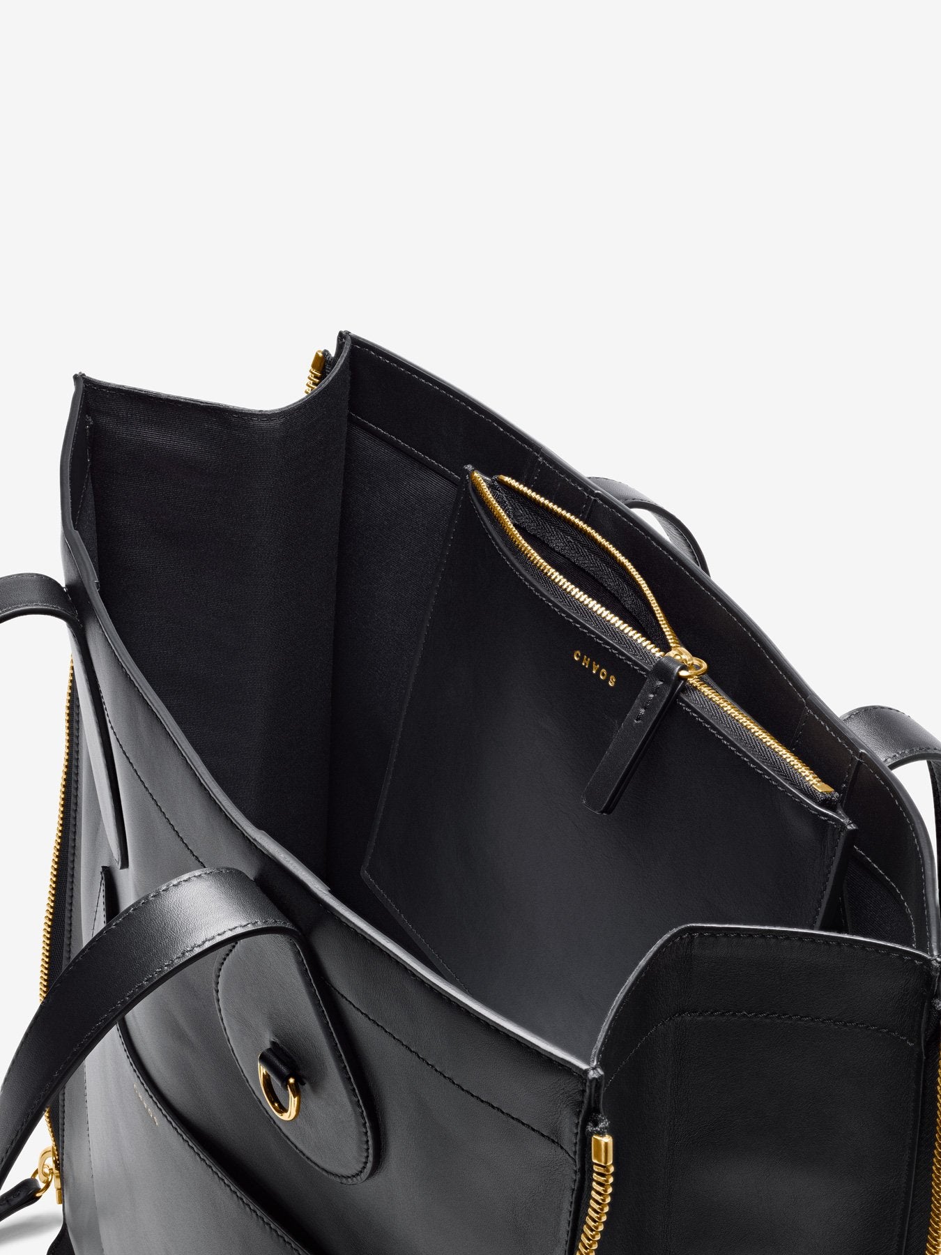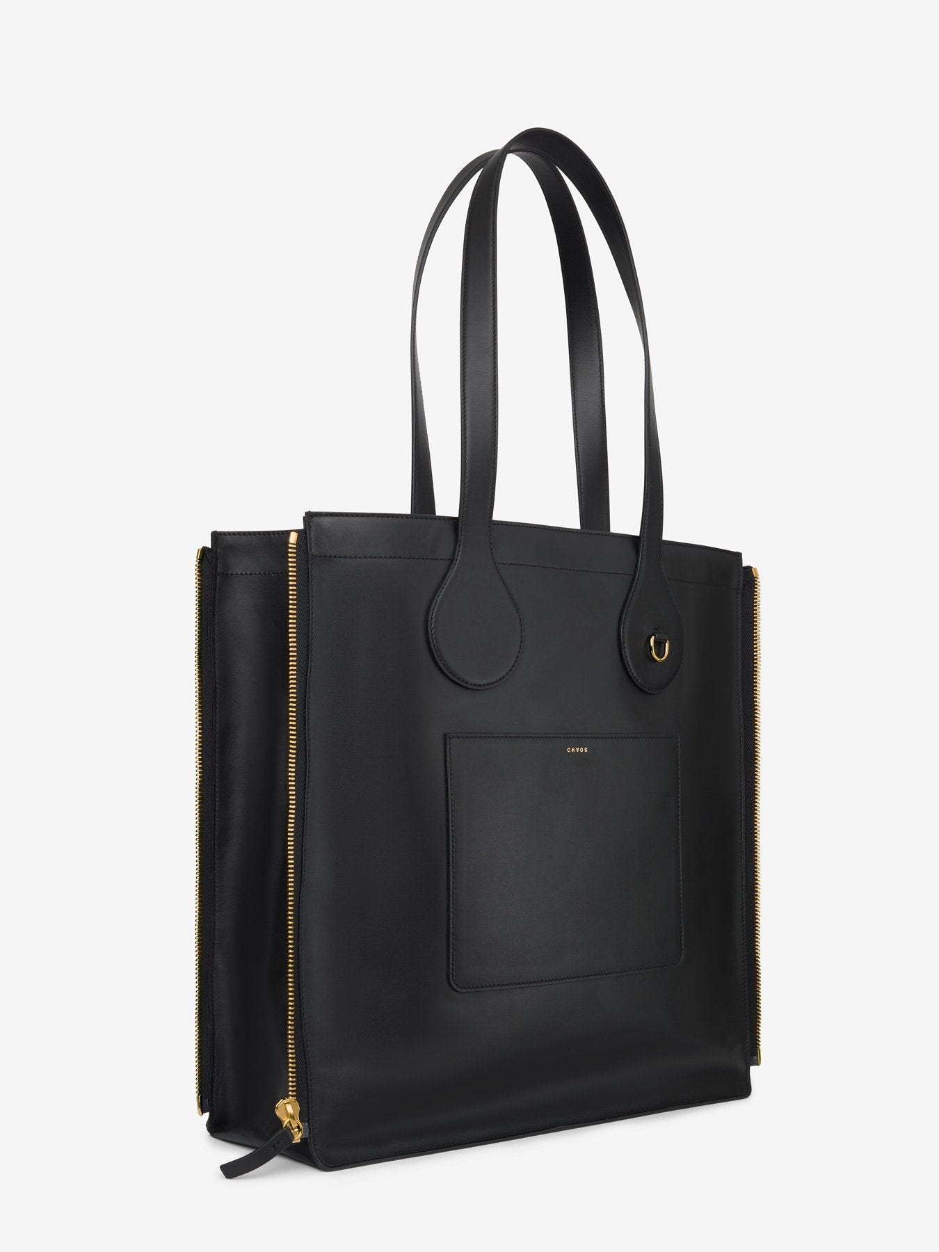 The Chaos leather tote is the perfect everyday bag. On either side of the bag there are two quintessentially Chaos gold zips that allow you to wear the bag flat & slimline or you can unzip for extra depth (if you over pack......like us)!