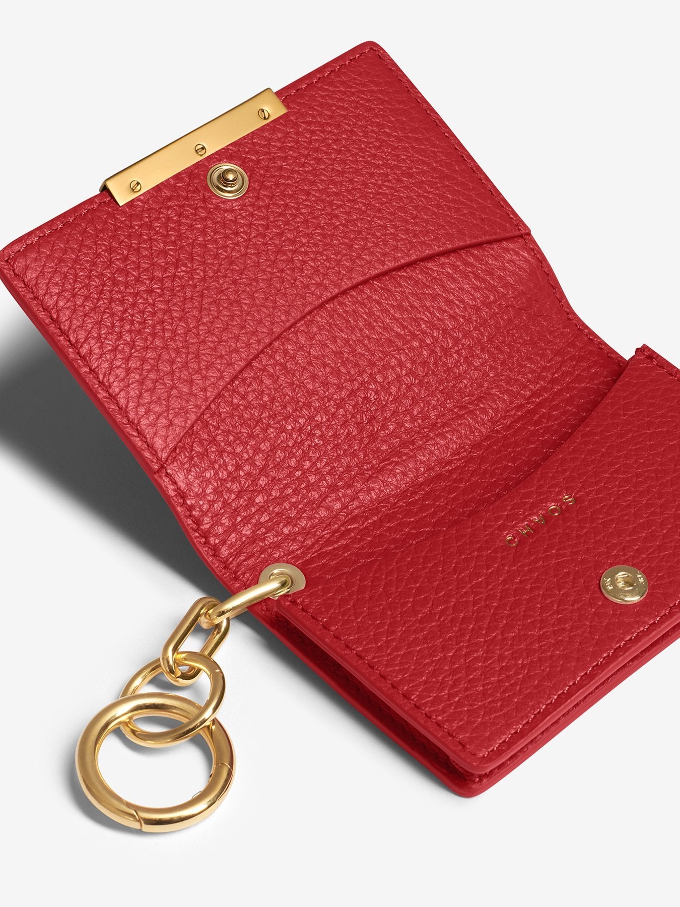 The essential card holder includes a bi-fold double pocket for quick access and card organisation and a polished gold bar with a secure popper to keep it safely closed.