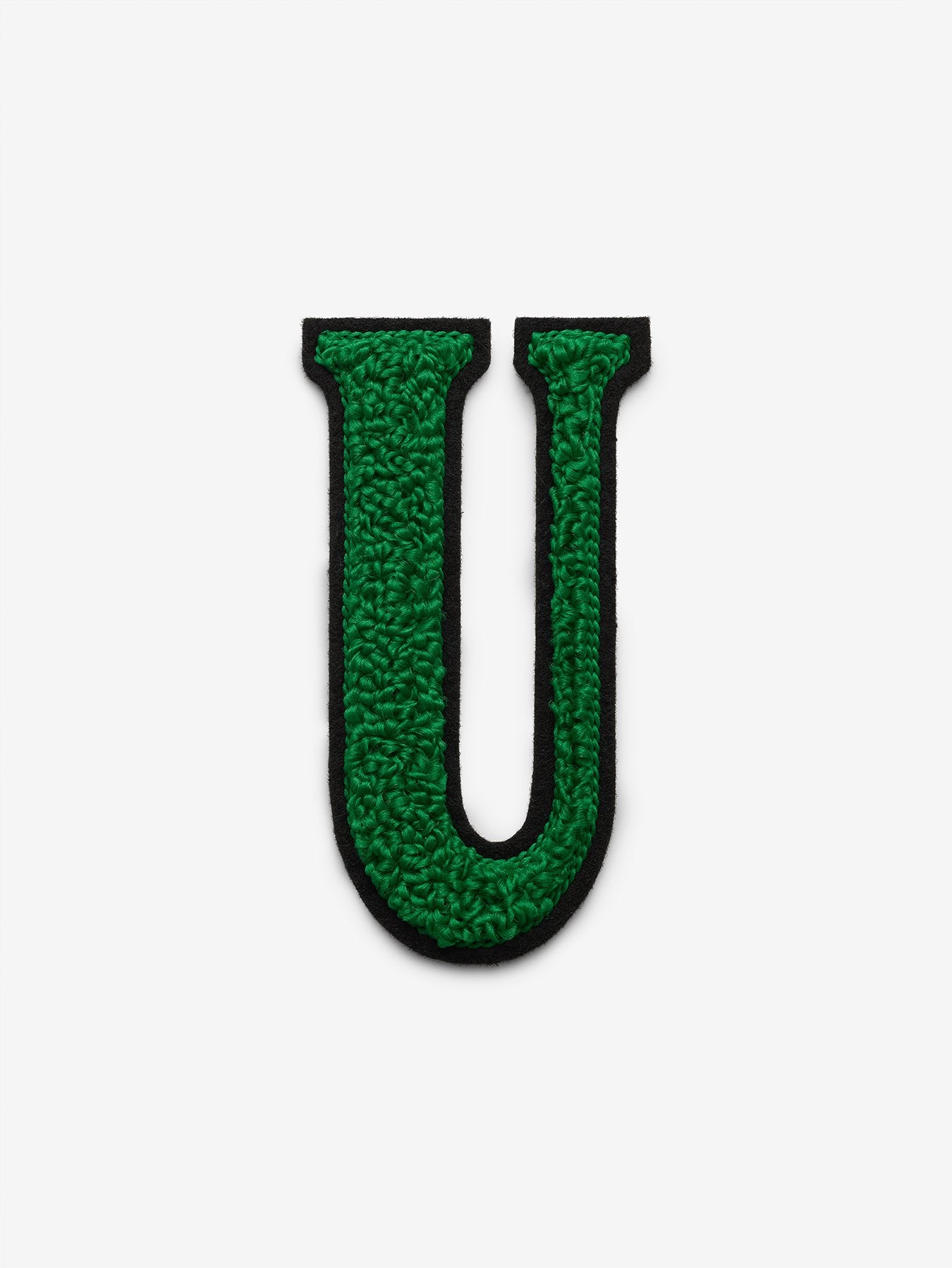 Embroidered Chenille Adhesive Letter. Please note this product will not stick to Silicone.