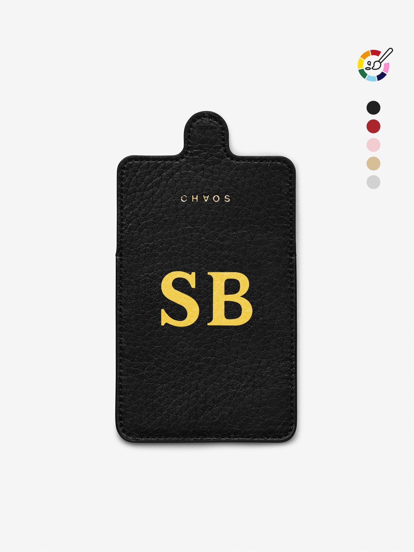 The Chaos Cardholder sticker applies to your phone case or directly to your phone. You can even pop it on your notebook, laptop or iPad. Anywhere you might need to have your credit, membership, business cards handy! Holds up to 3 cards and stays closed with a hidden magnet. Available in 5 delicious leather colours so it can combine perfectly with your other Chaos accessories. The card holder can be customised in with 1 or 2 letters or symbols.