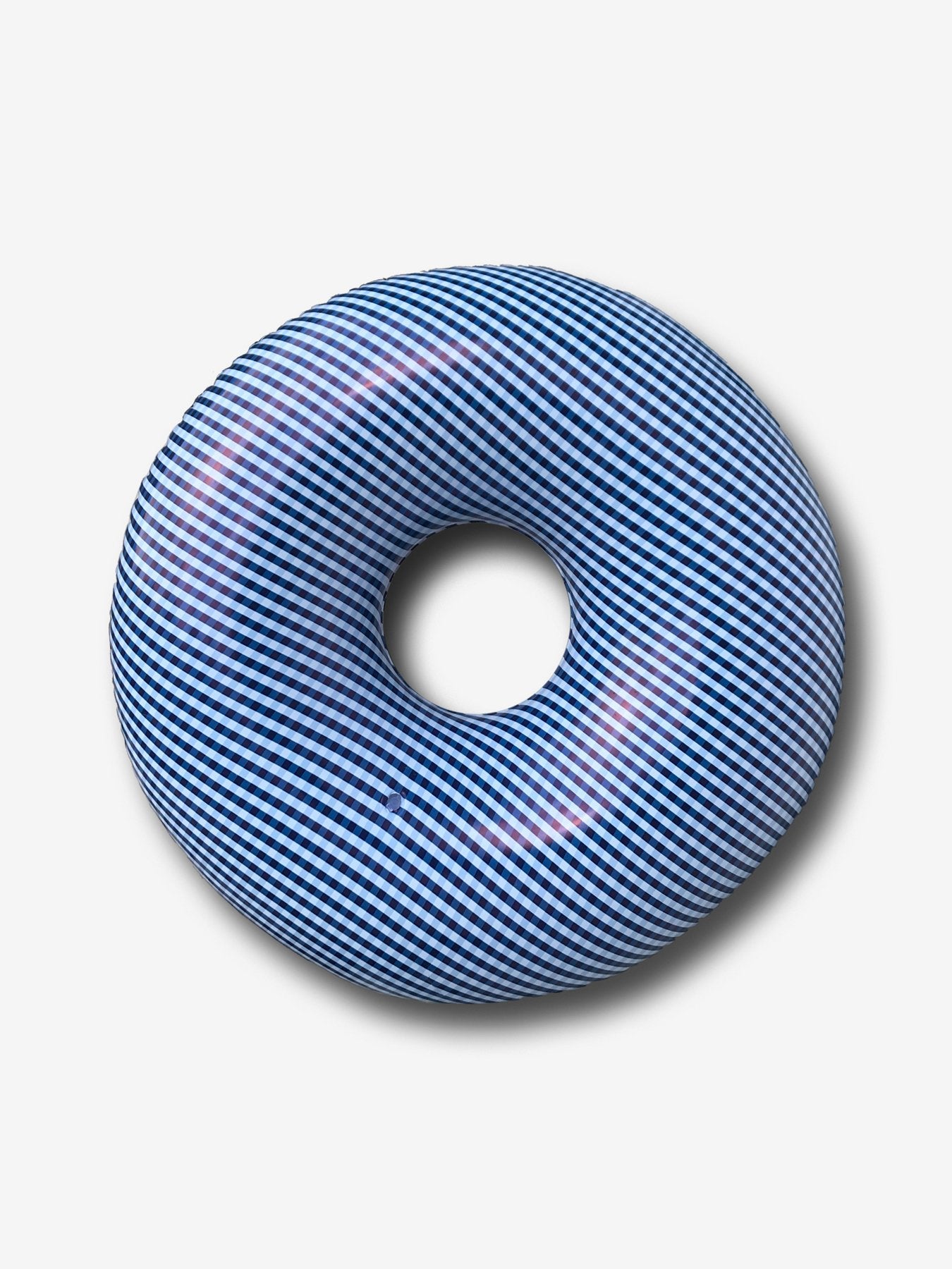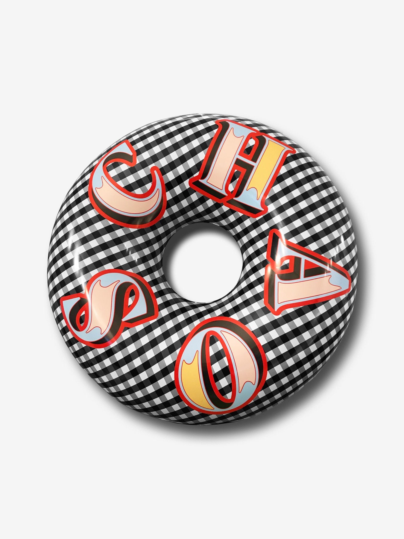 The Chaos gingham inflatable ring comes with the CHAOS circus logo over a black/white & navy/white gingham prints.