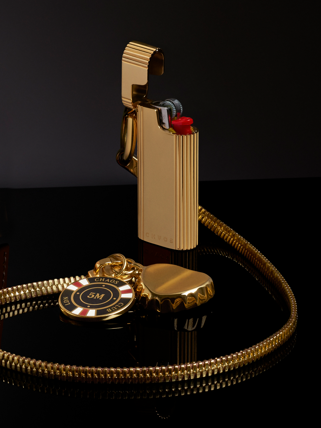 The new Chaos lighter holder is the latest edition to the metal accessories. Disguise your Mini Bic© with this elegant case, available in gold, silver or black. Match with your carabiner to easily attach to your essentials.
